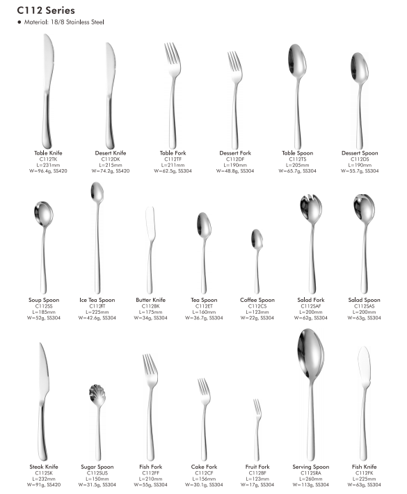 C112 سیریز مہارت کے ساتھ اعلی معیار کے 18/8 سٹینلیس سٹیل سے تیار کی گئی ہے۔
